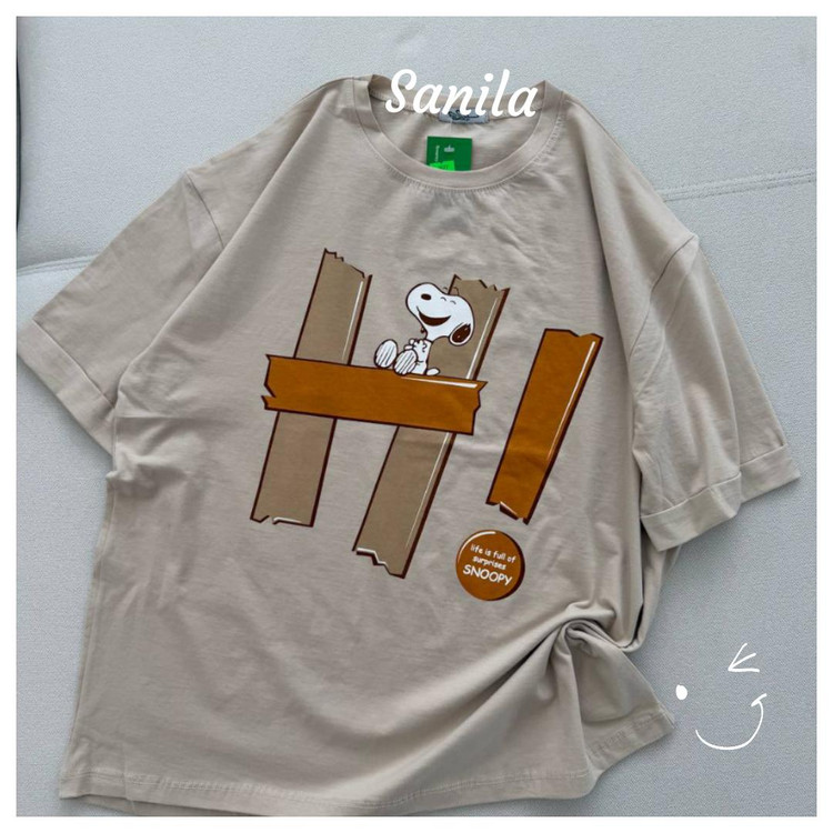 تیشرت زنانه یقه گرد آستین پاکتی Hi Snoopy