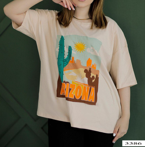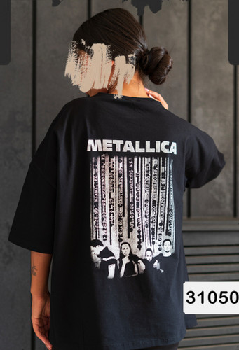تیشرت زنانه یقه گرد قواره دار دورو چاپ Metalica