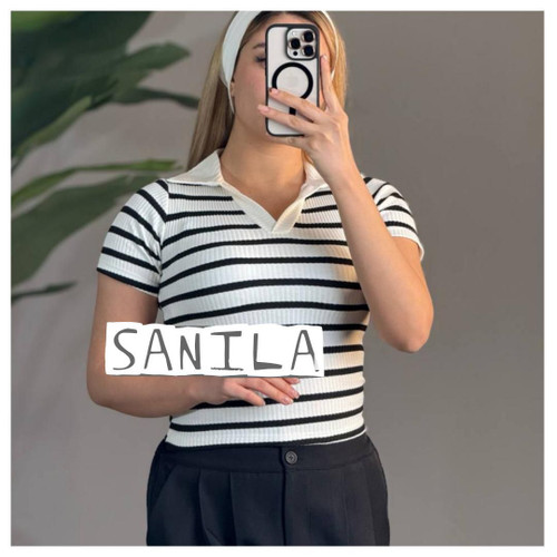 کراپ زنانه یقه دار پلیسه پنبه
